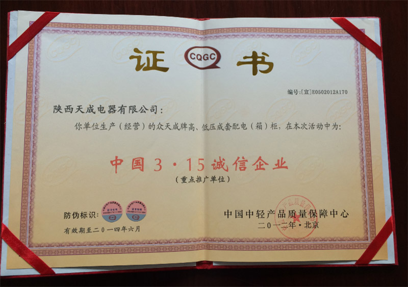 2012年315诚信证书
